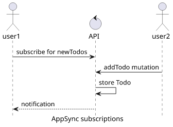 Then there are subscriptions. A subscription is a real-time notification channel that clients can use and get an event through WebSocket when some data is changed. For example, if a client shows the Todo items for a user, it might want to update the list real-time when another client makes a request (a request that changes data is called a Mutation in GraphQL terminology) that changes it.