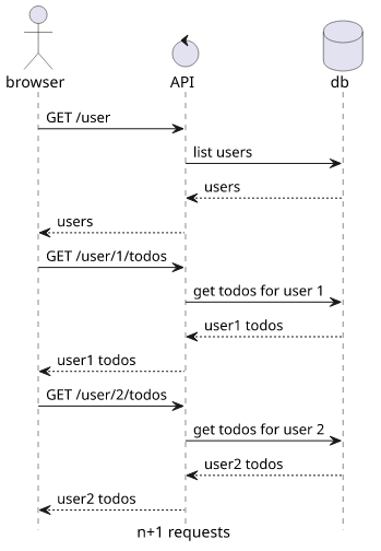 When the client wants to show the users and their Todo items, it can send a request for the users, then for individual users, then for Todos for a given user.
