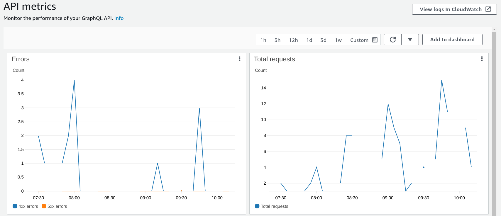 Finally, AppSync writes a ton of logs to CloudWatch and it also publishes metrics about the API.