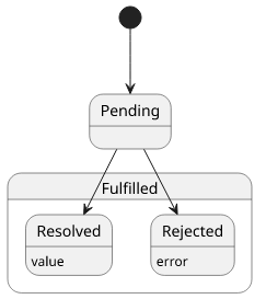 When the Promise is ready, it transitions to the Resolved or the Rejected state. Collectively, these are called Settled or Fulfilled. At this point, the Promise has a value, either a result (if it is resolved) or an error (if it's rejected).
